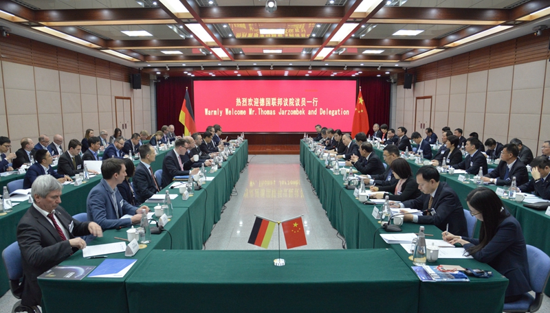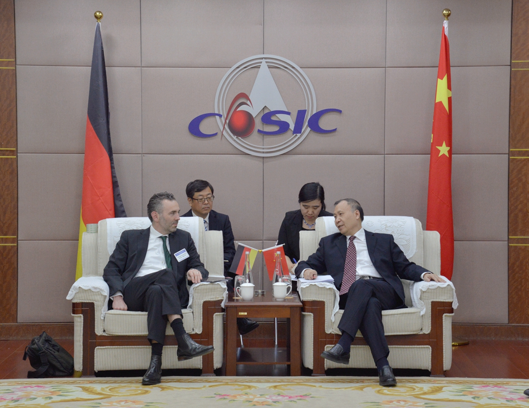 On March 25, Gao Hongwei, President of CASIC, Liu Shiquan, General Manager of CASIC and Wei Yiyin, Deputy General Manager of CASIC, met with members of the German Federal Parliament, Thomas Jarzombek, aerospace policy coordinator of the German federal government and representatives of aerospace enterprises of Germany. Both parties exchanged thoughts and ideas in a discussion on cooperation in the aerospace field, further expanding the cooperation between affiliates of CASIC and the German enterprises. Relevant departments of the headquarters and main leaders of second-level organizations participated in the discussion.
