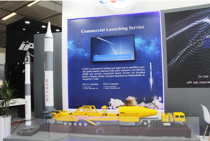 At this show, CASIC mainly showcased KZ-1A and KZ-11 solid launch vehicles. As a general-purpose solid launch vehicle mainly for launching 300kg-level small low-orbit satellites, KZ-1A has general international interface and features high flight reliability, high orbit injection accuracy, short preparation period, few support requirements and low launch cost. Currently, it has completed two commercial launch missions and concluded more than 10 intent orders. To meet the requirements of commercial launch service, CASIC has developed KZ-11 launch vehicle with higher carrying capacity, lower launch cost and a sun synchronous orbit carrying capacity of 1,000 kg/700 km. The launch vehicle will have its maiden flight in 2019.
