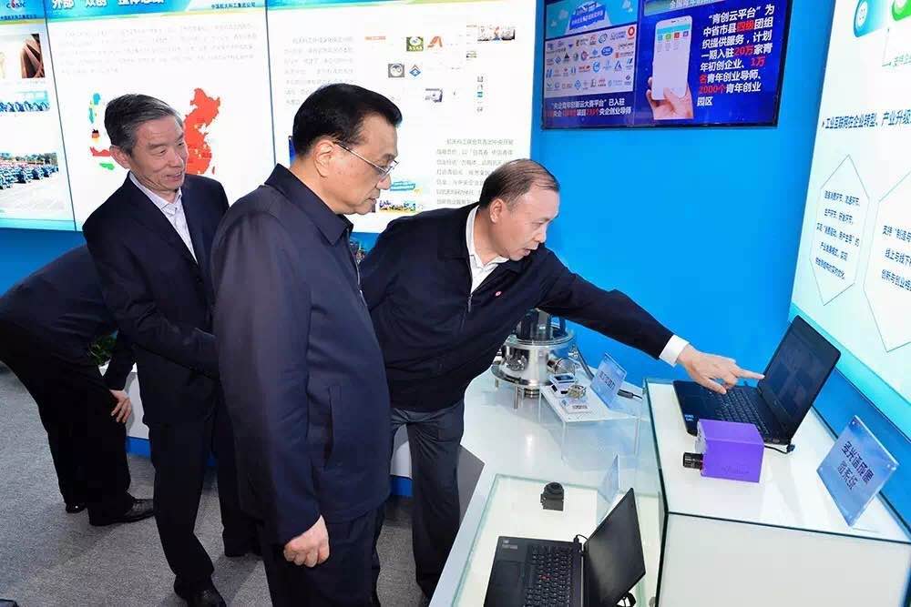 On April 27, Li Keqiang surveyed the CASIC Mass Entrepreneurship and Innovation base, Beijing Yonghe Aerospace Park, and visited the mass entrepreneurship and innovation exhibition of state-owned enterprises, during which Li mainly listened to the reporting of CASIC's latest achievements on mass entrepreneurship and innovation, checked the best exhibits and communicated gladly with all entrepreneurs in the aerospace industry.